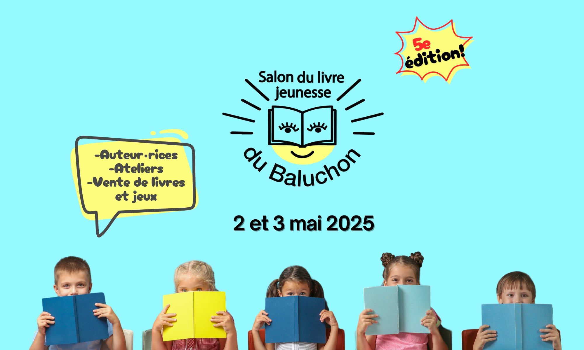 Le Salon du livre jeunesse du Baluchon 2025 est de retour pour une 5e édition ! Des milliers de livres pour les enfants de tous les âges vous attendent !